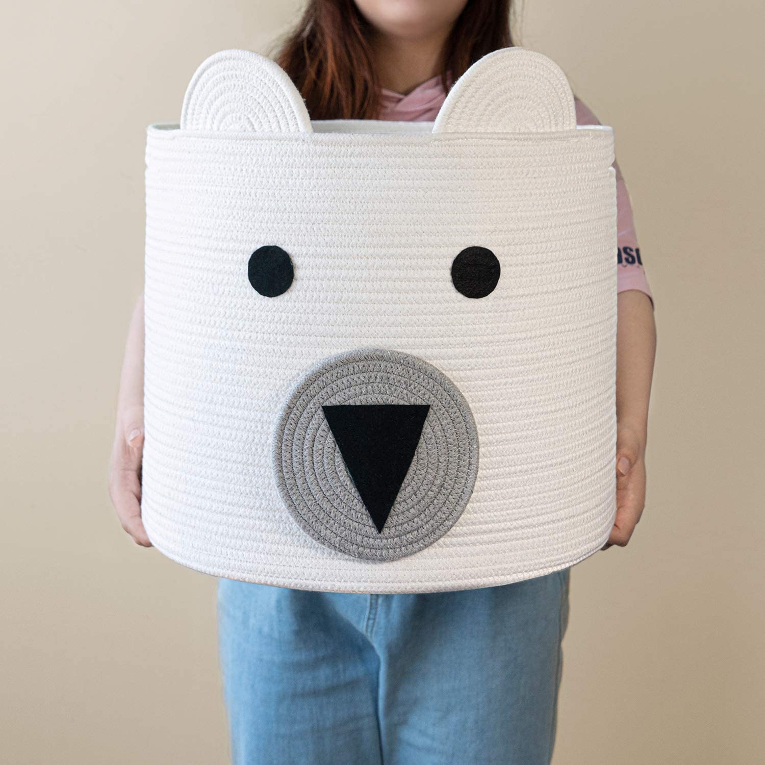 Large Bear Basket, Cotton Rope Basket, Cute Storage, White