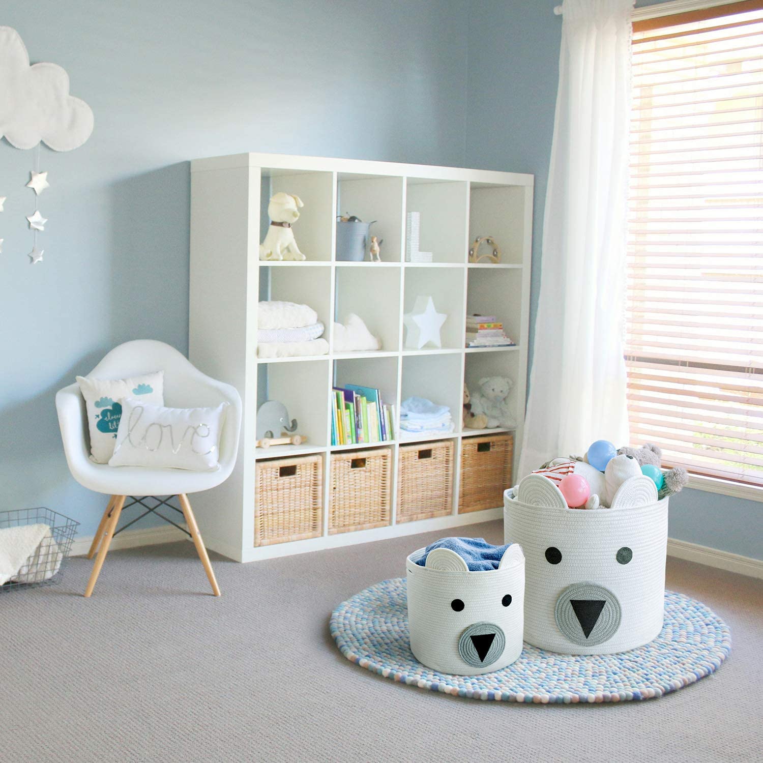 - Multi-function Basket: The multi-function storage basket is very suitable for the playroom. It is cute and sturdy, and it can play the role of storing clothes, blankets, toys, and so on