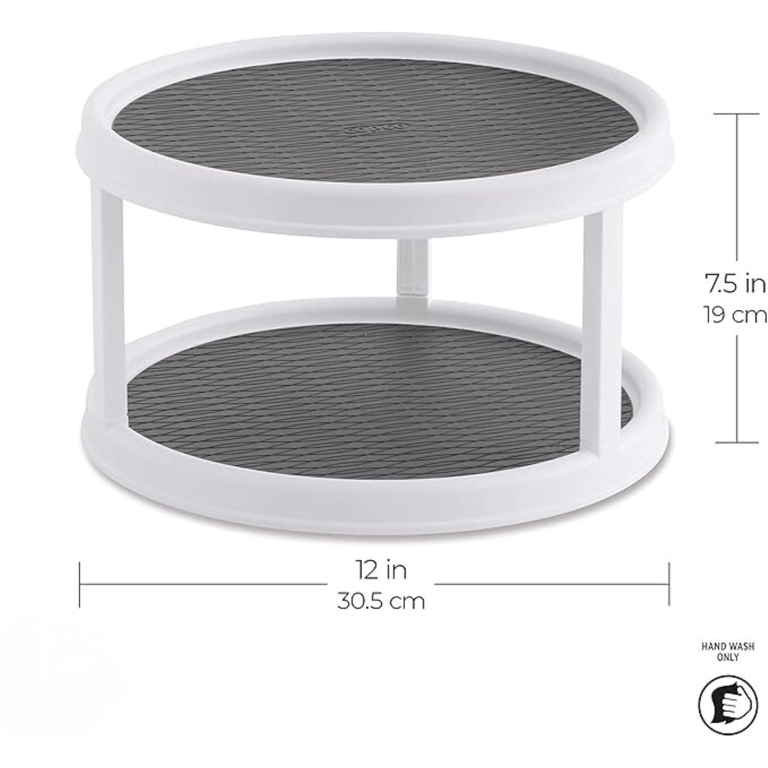 ?? Non-Slip Surface & Stable Base – Comes with textured anti-slip mats on both tiers and a stable base to ensure your containers stay put even while rotating.