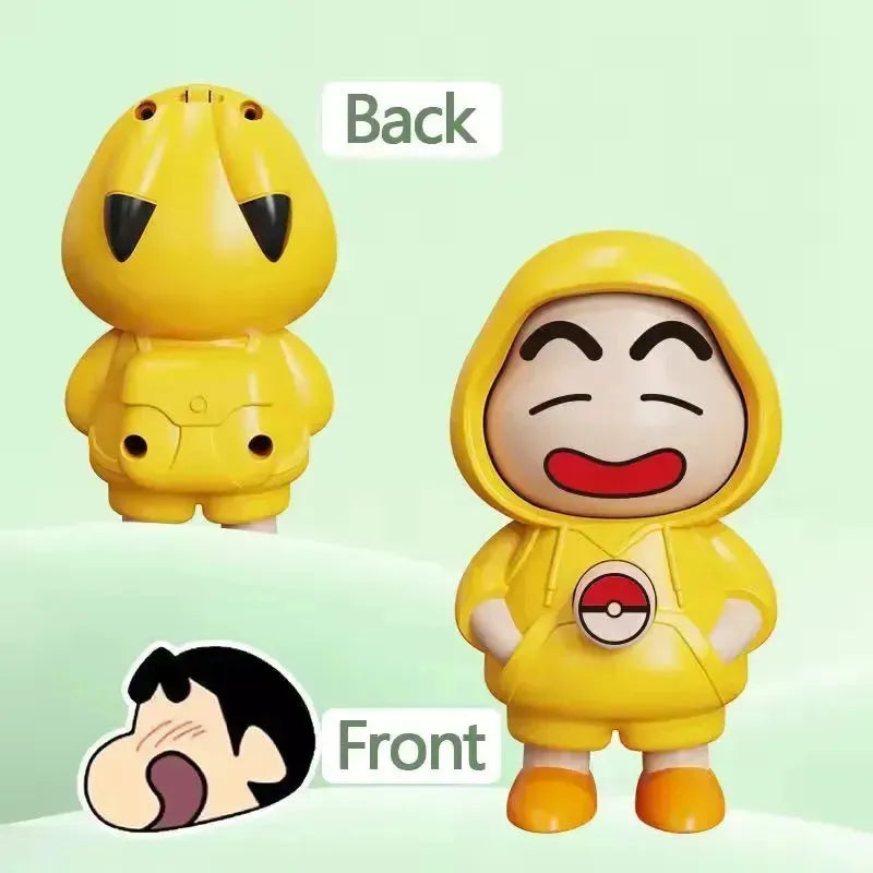 - Raincoat Design: Each Shin-chan is wearing a raincoat, adding to the overall charm and collectibility of the set. This is a cute and unique detail that complements the playful expressions.