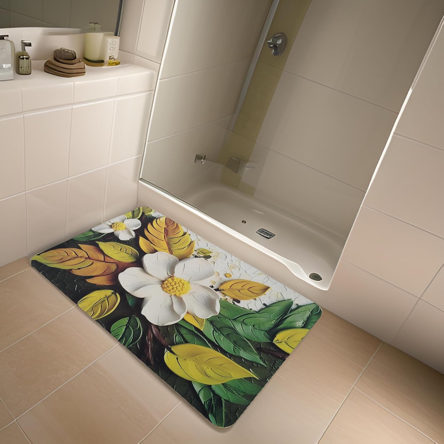 Floral Anti-Skid Bathroom Mat – Ultra Absorbent & Quick Drying