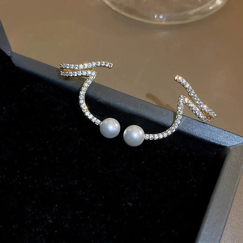 "Effortlessly elegant, embrace the beauty of the ocean with our Wave Pearl Studs. Delicately crafted to capture the essence of gentle waves, these studs are adorned with lustrous pearls that shimmer with every movement. Elevate your style and make a statement of refined sophistication. Dive into luxury with our Wave Pearl Studs today!"