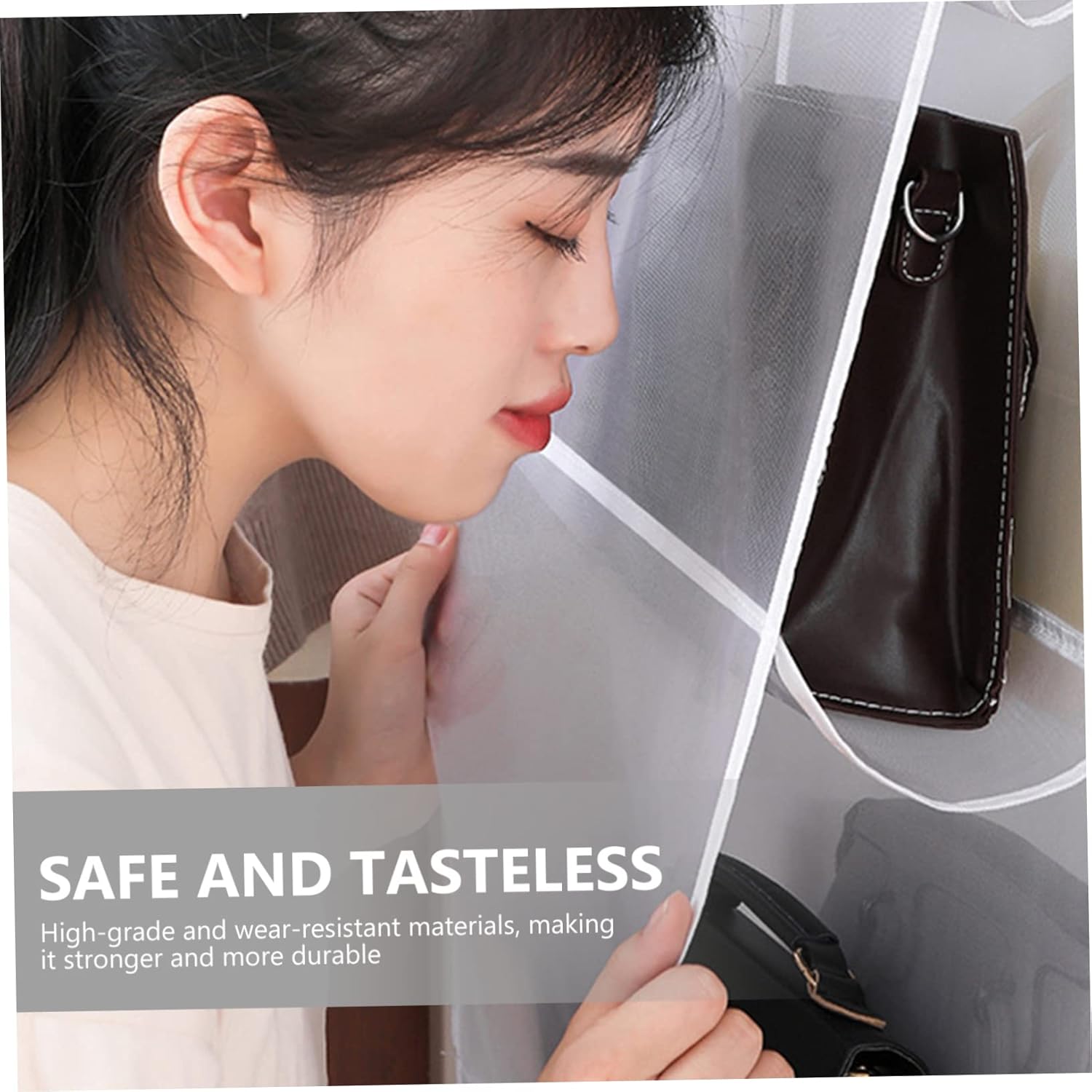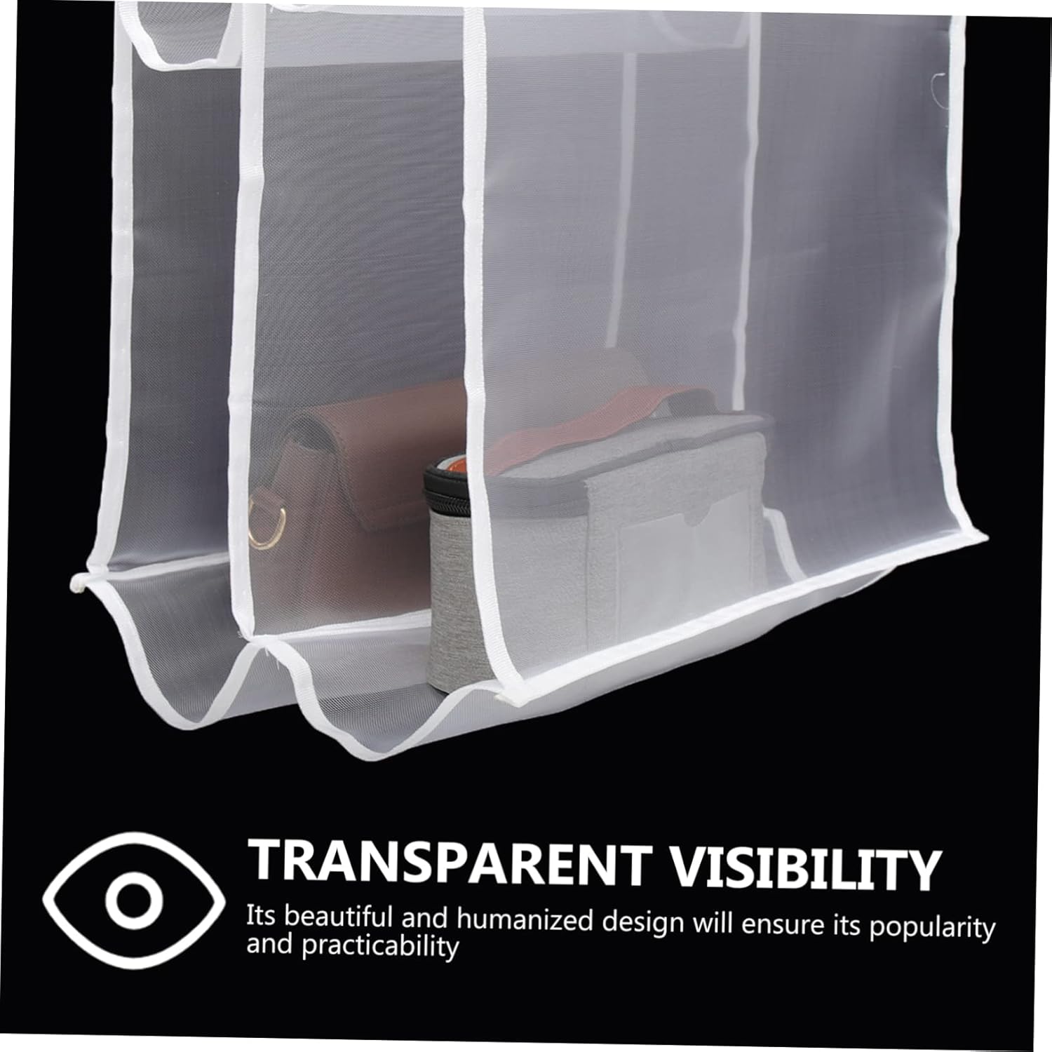 Crafted with high-quality breathable mesh fabric, it ensures maximum visibility while preventing dust, moisture, and scratches. Each compartment is spacious enough to fit one large handbag or multiple smaller accessories, helping you keep your wardrobe clean and organized.