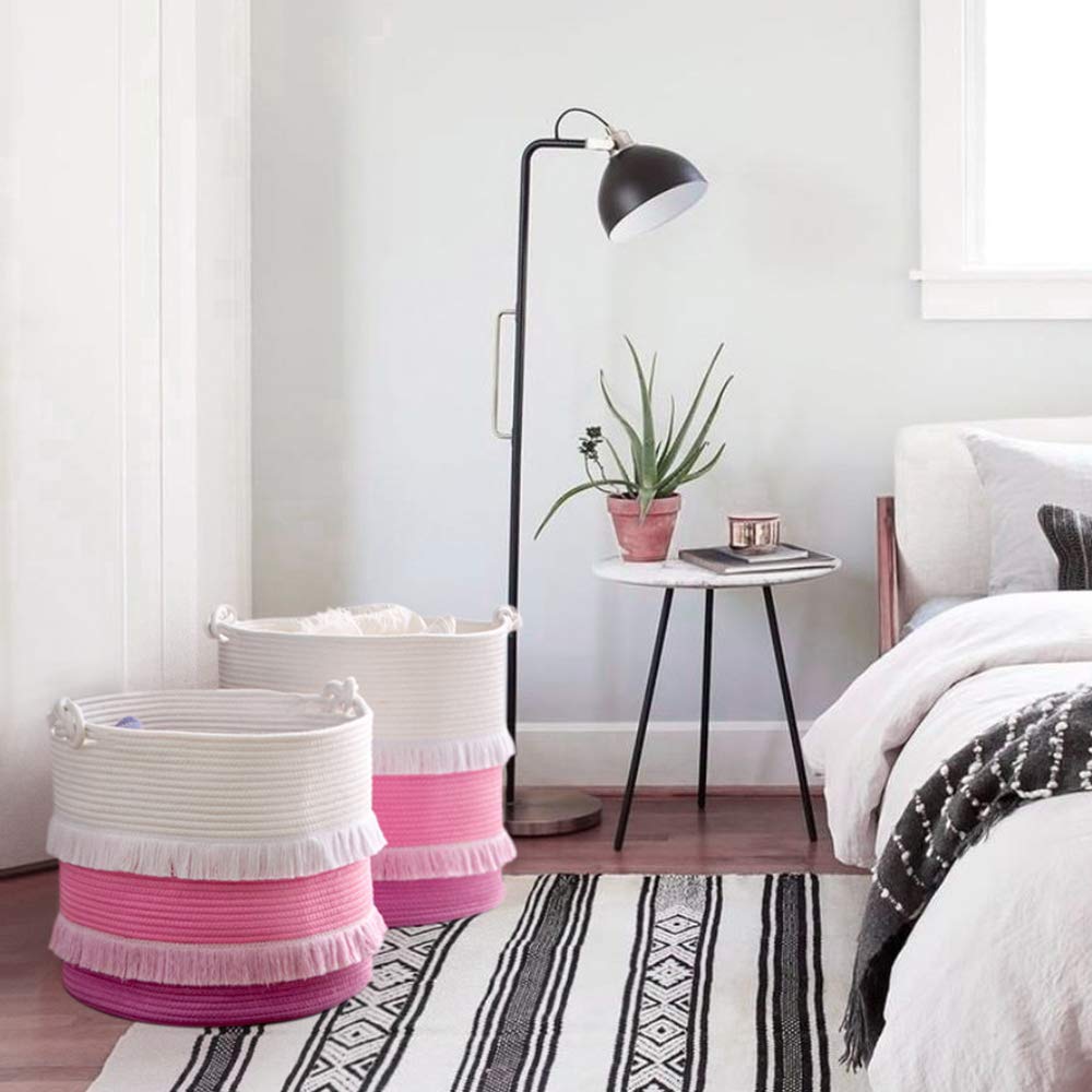 - TASSEL DESIGN: Our hamper has two layers of tassels, which have great layering; teenage-style fringe is suitable for girl's room, it is also a cute home décor for the bedroom, living room & nursery