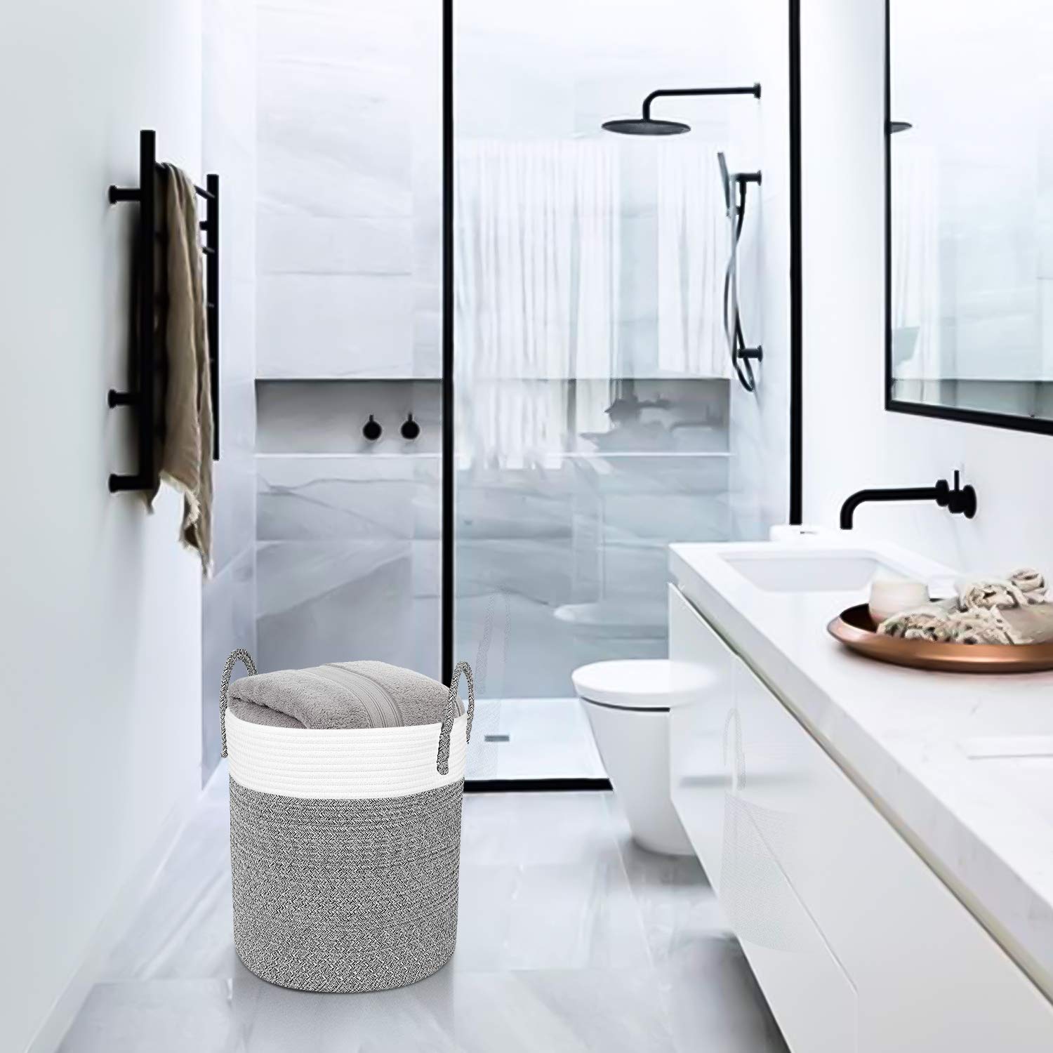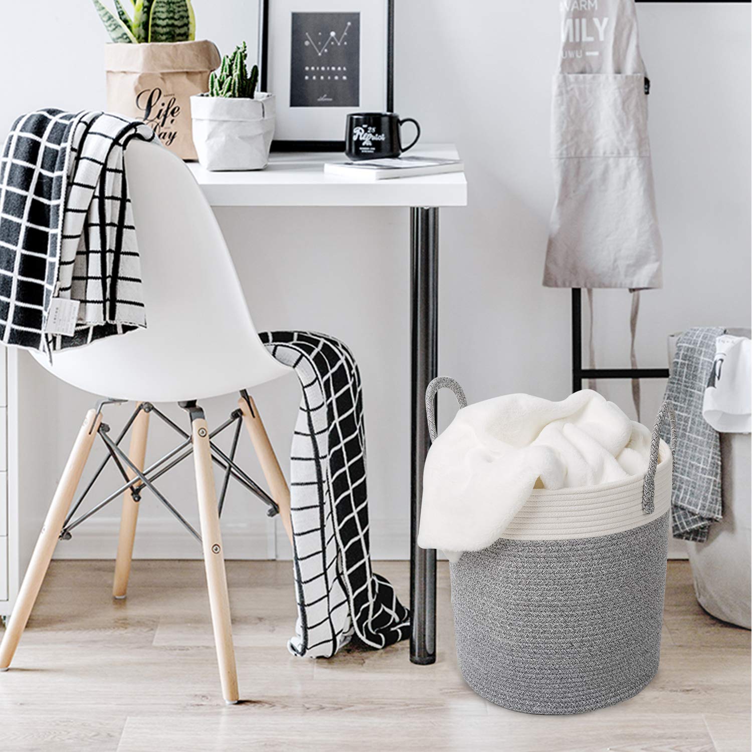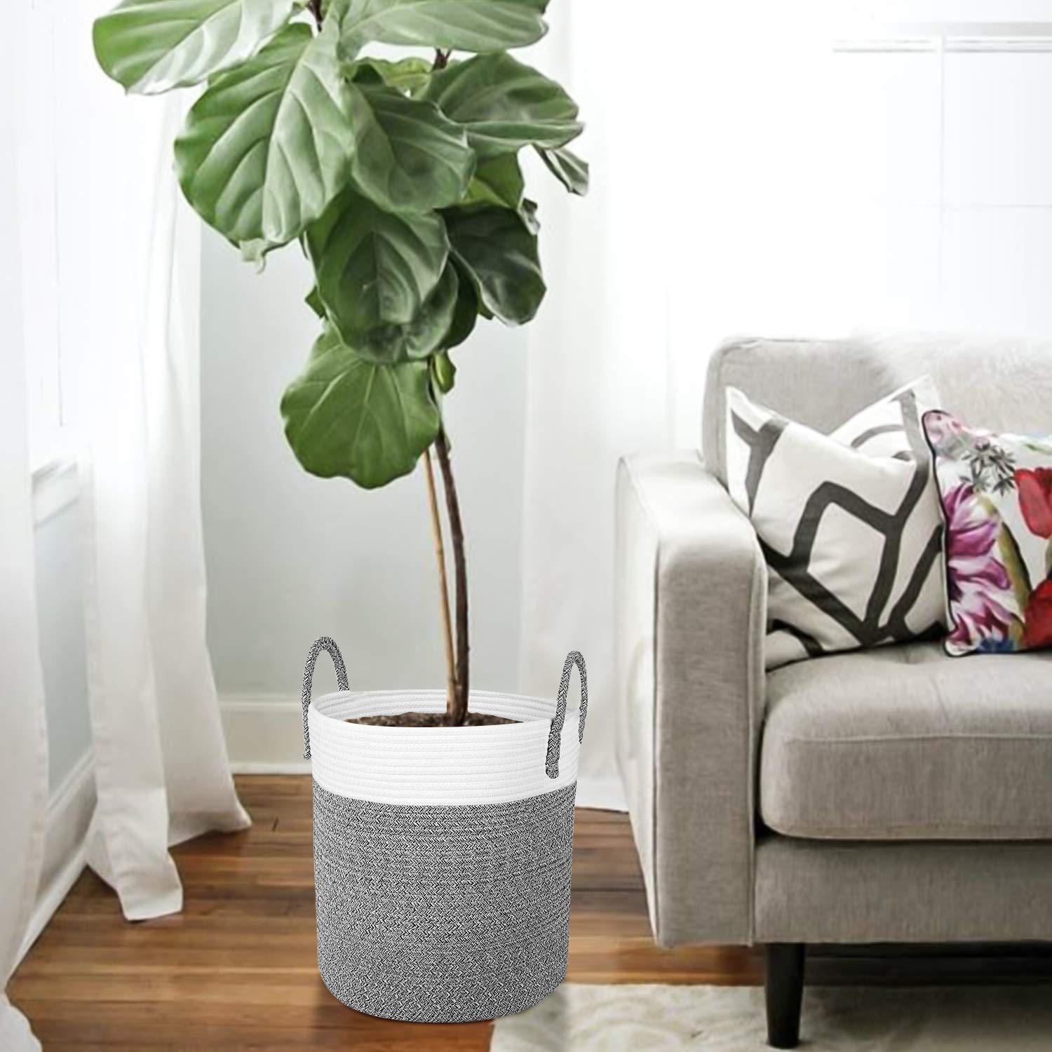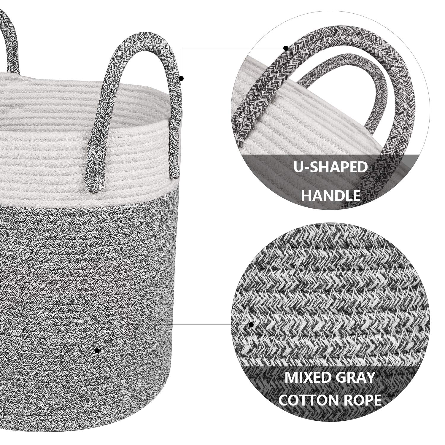- ?Guaranteed Great Material: All gray rope baskets use natural cotton coil rope, so these baskets are firm to hold heavy items and sturdy enough to stand up by itself, soft enough to be collapsible as well