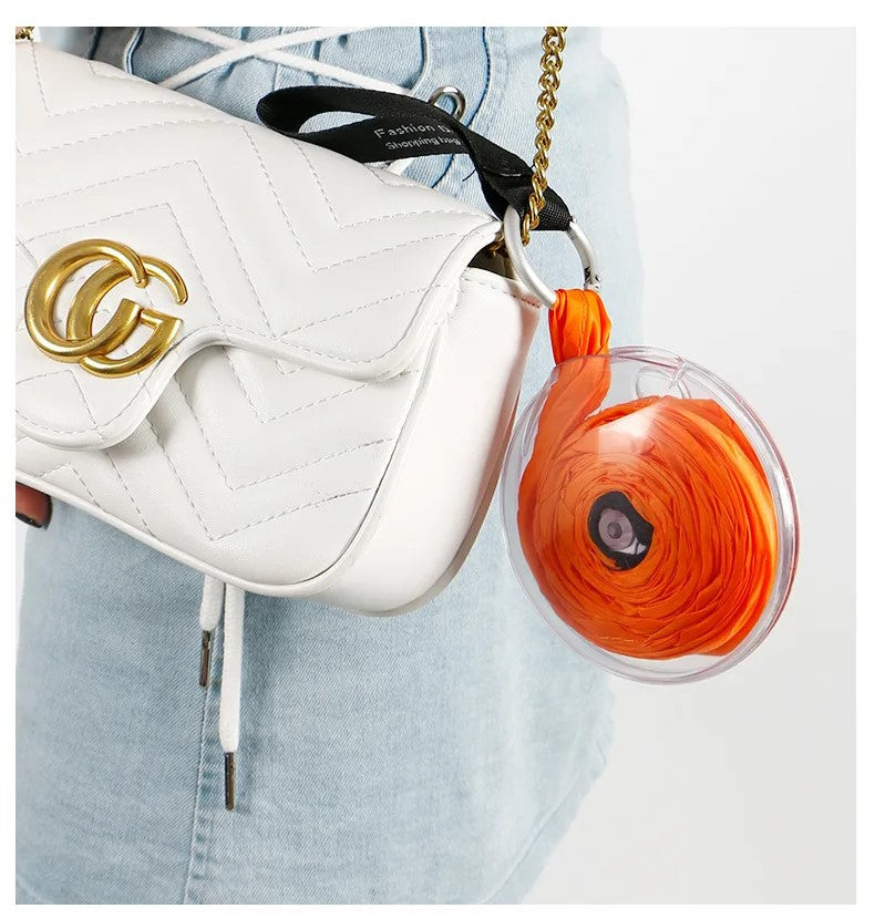 - They Are Practical And Very Necessary For Your Shopping. Simply Flip The Lid To Fold The Shopping Bag Into The Plastic Round Box.